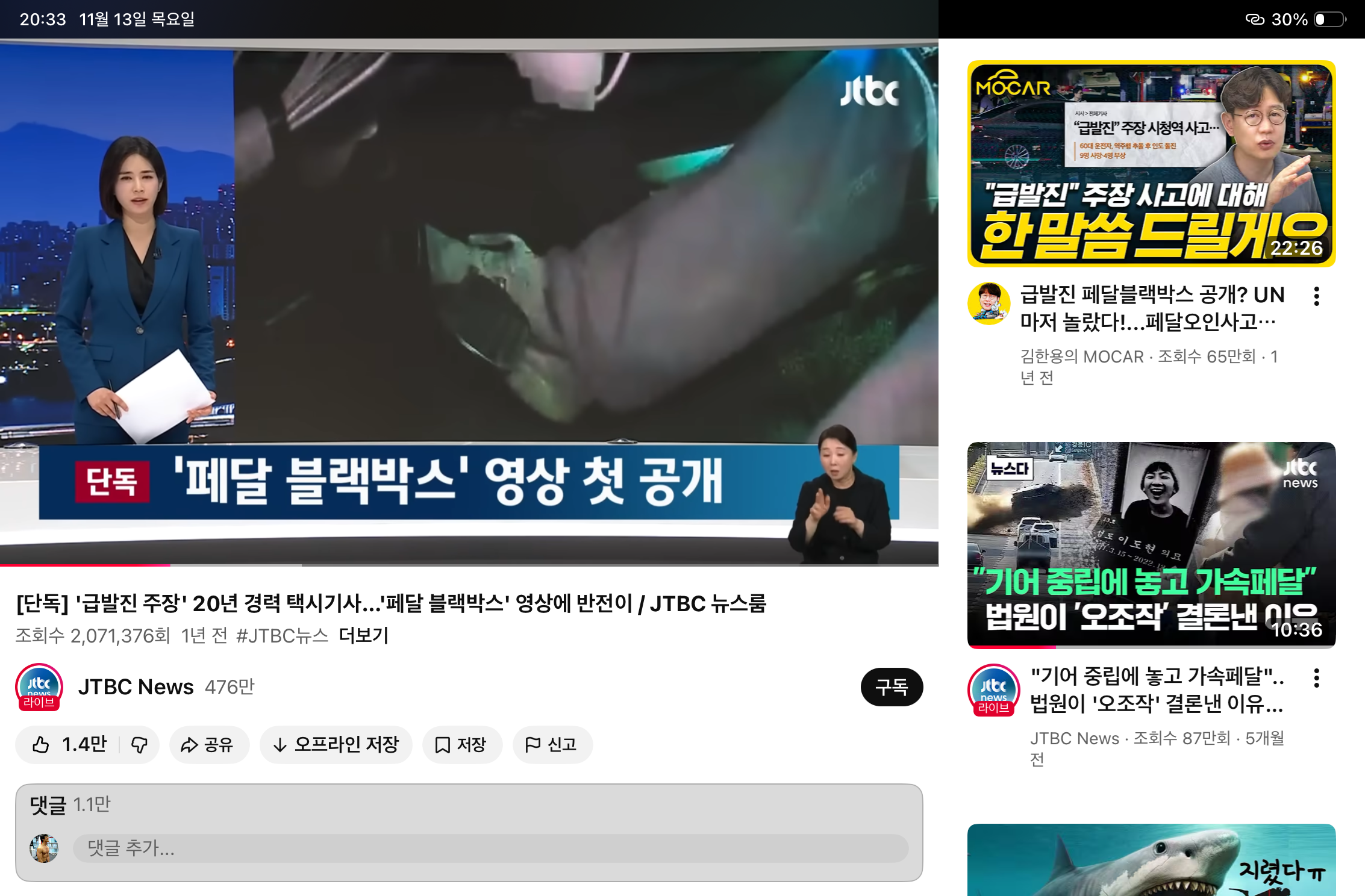 한국 뉴스에는 여전히 "급발진 의심"이란 단어를 쓴다.