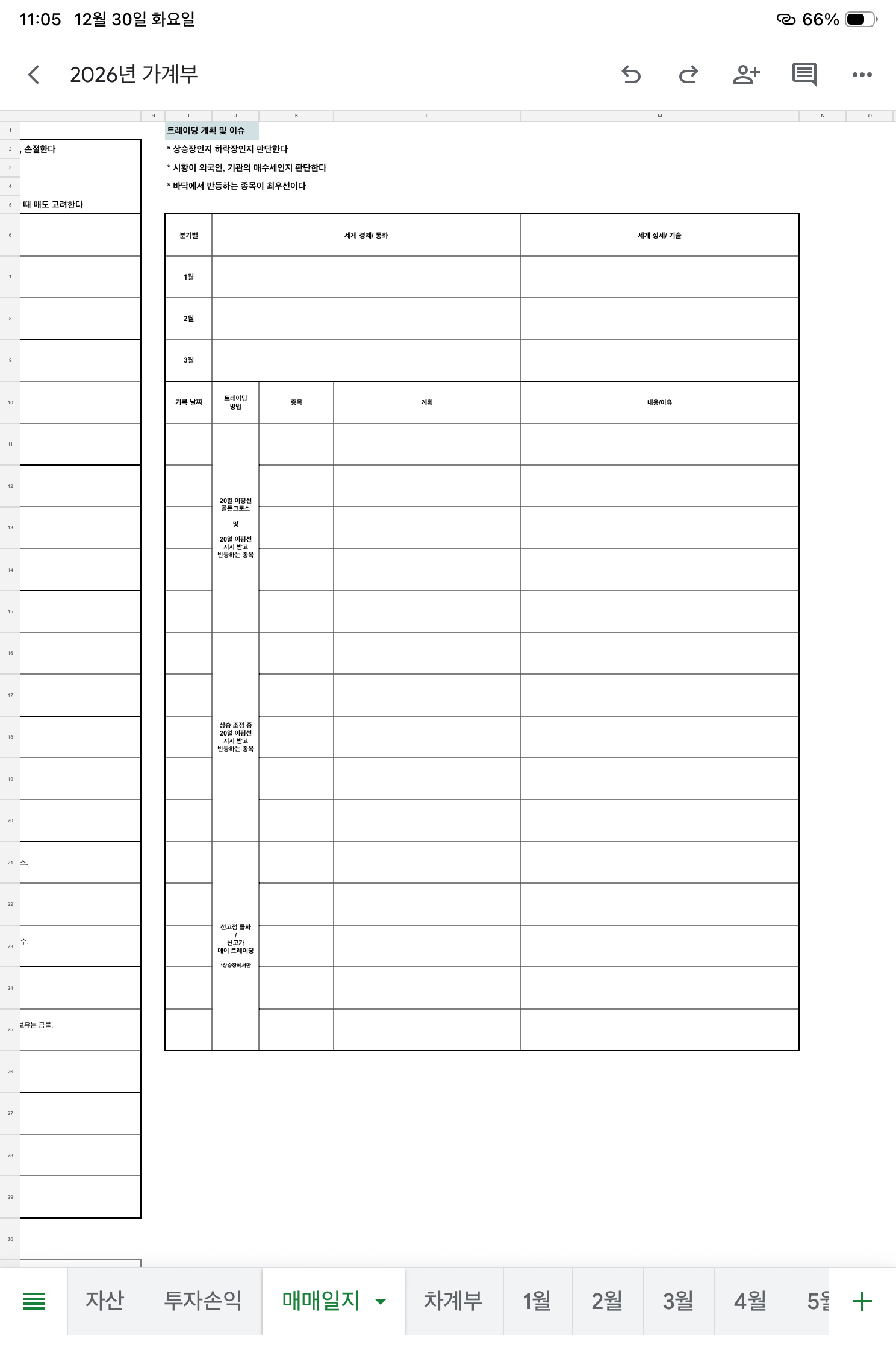 왼쪽에 매수, 매도할 때 기록을 하면서